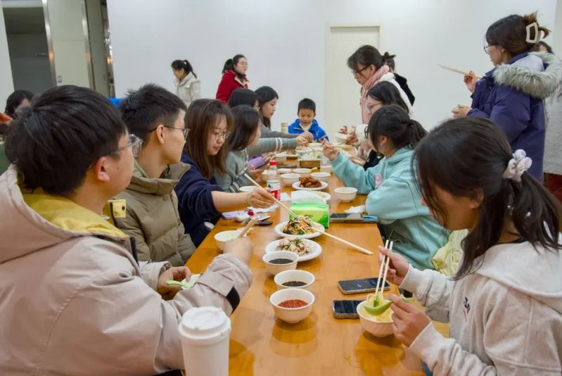 师生相聚教工一食堂,举办“冬饺去岁寒”包饺子活动。