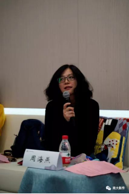 周海燕老师谈论了“校园媒体的职责和使命”的问题,她强调同学们一定要培养四个能力:全面搜集信息的能力、讲故事的能力、缜密的逻辑分析能力、行动能力。在校园媒体中也要怀有社会责任感,对内自省,提升能力;对外则要做出学生力所能及的社会贡献。
