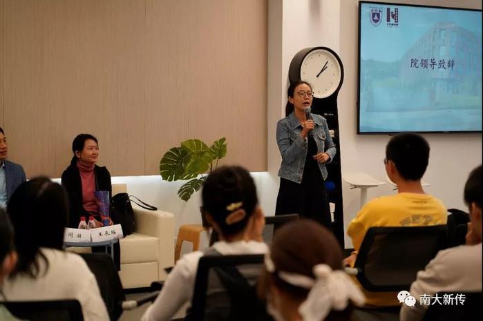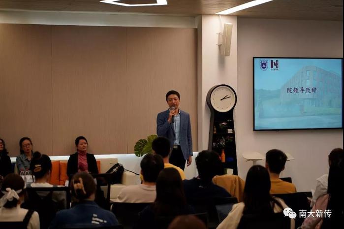 接着,党委副书记闻羽致辞。他强调,作为社会主义大学的新闻传播学科,一定要以马克思主义新闻观为统领,树立正确的新闻价值观,希望同学们立足新传,面向南大,讲好南大故事;同时,坚持“未来编辑部”改版原则,注重“两个回归”即“回归教学,回归课程”,培养正确的成长观和成果观,推进内涵式发展和高质量提升。