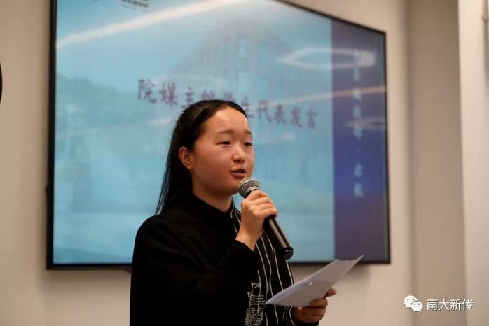 接下来,指导教师代表白净老师发言,她说,院媒是一个老师和学生面对面交流的地方,南大新传有一套完整的机制支持着校园媒体的运行,让校园实践平台走得更远。社会化媒体时代每个人都要学会“媒体能力”,而每个院媒都有自己的侧重,每位同学可以根据自己的兴趣和需要的技能选择加入不同的院媒,全方位提升自己的实践能力。