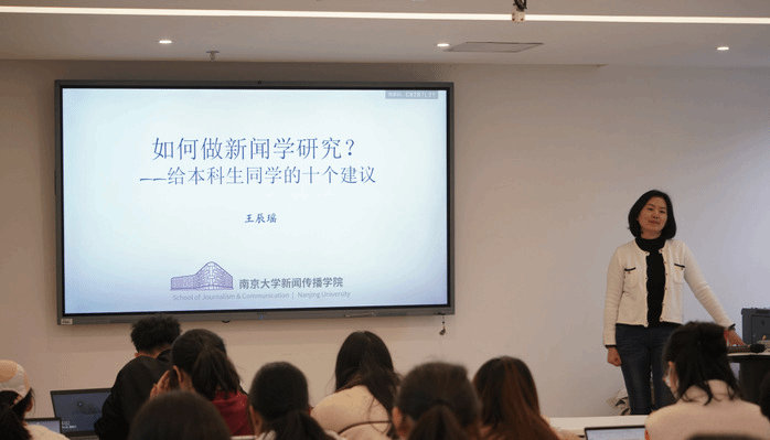 王辰瑶教授,她主讲的题目是《如何做新闻研究——给本科同学的十个建议》。