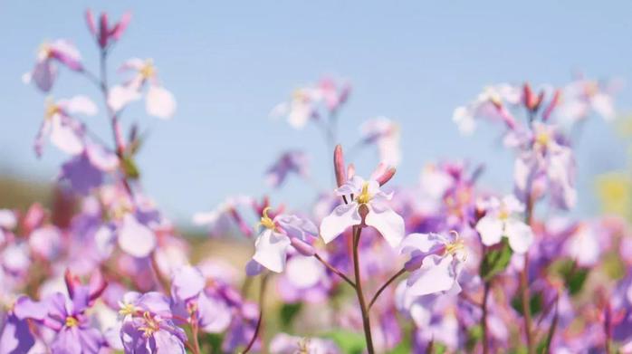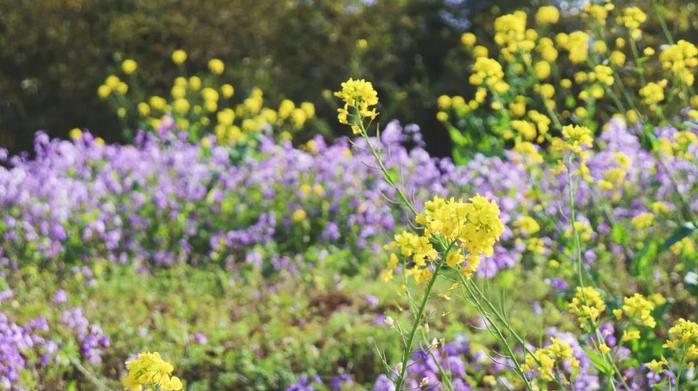 紫色的二月兰,在山脚下蔓延,生机盎然的同时又添三分迷离、七分静谧,走近能嗅到淡淡的幽香,还有蜜蜂在上面驻足停留。