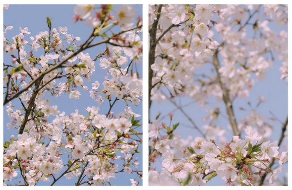 彼时阳光灿烂,万物生长,抬眼望那些在微风中颤颤的半透明浅粉色花瓣,心里总会弥散开一种脆弱的欢喜。穿行其间,总感觉自己同时也穿梭在无数个时空里、那些人共通的思念与惆怅里,神明把风光交给霁月,也把樱花交给春天。