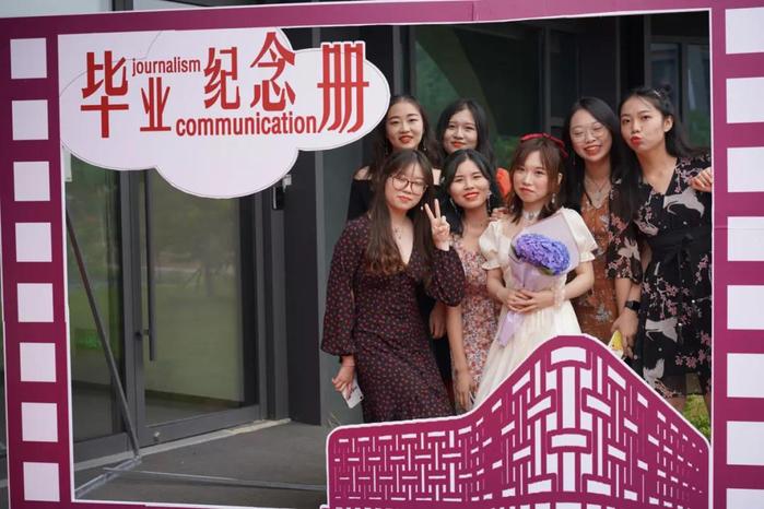 典礼正式开始前,学院为2020届毕业生们准备了红毯和签名墙环节,新传学子陆续到场,参加这场专属于他们的特殊典礼。