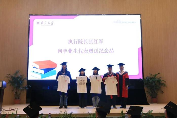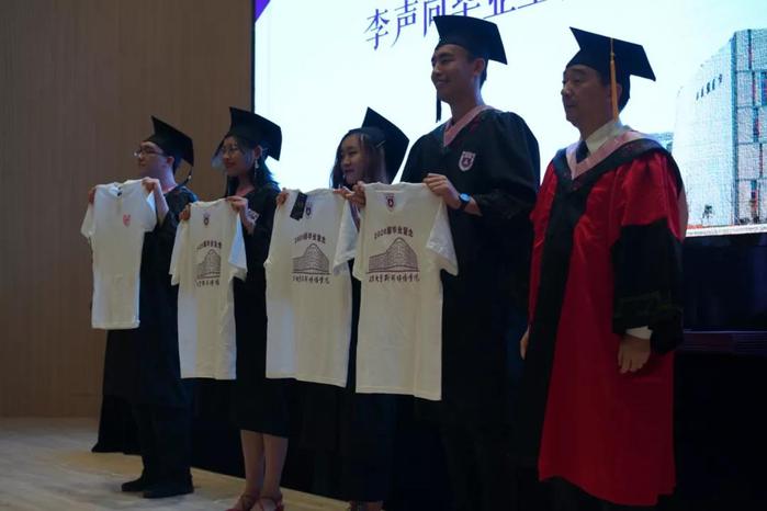执行院长张红军教授代表学院向毕业生代表向毕业生赠送毕业纪念衫。