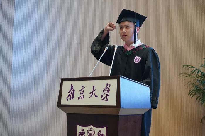 仪式伊始,毕业生代表、2017级硕士研究生赵一燊发言,她回望三年来在南大新传成长的岁月,感谢了母校和母院提供的包容而严谨的学术环境,希望大家只争朝夕,不负韶华,做有理想、有担当的南大人。