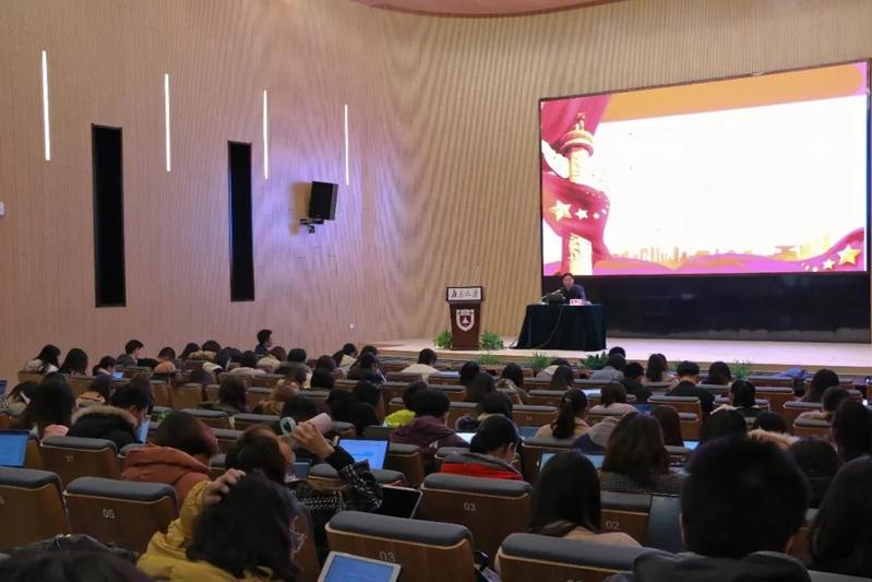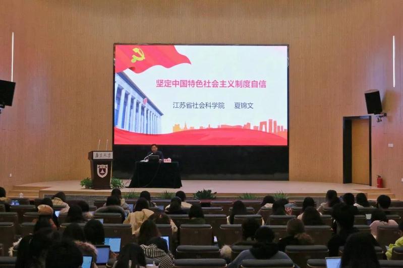 联合主办的国情教育课在仙林校区紫金楼报告厅举行第八讲。江苏省社科院党委书记、院长夏锦文结合党的十九届四中全会精神,以“坚定中国特色社会主义制度自信”为题进行了授课。ai色情