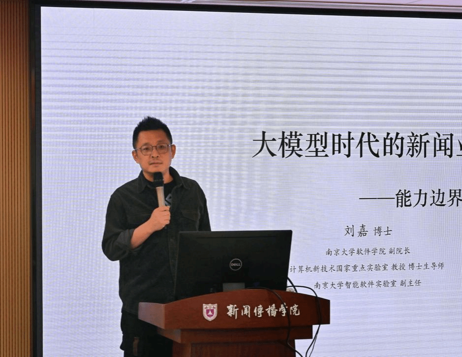软件学院副院长、智能软件工程实验室副主任刘嘉教授,作题为《大模型时代的新闻业:能力边界与人的价值》专题讲座。