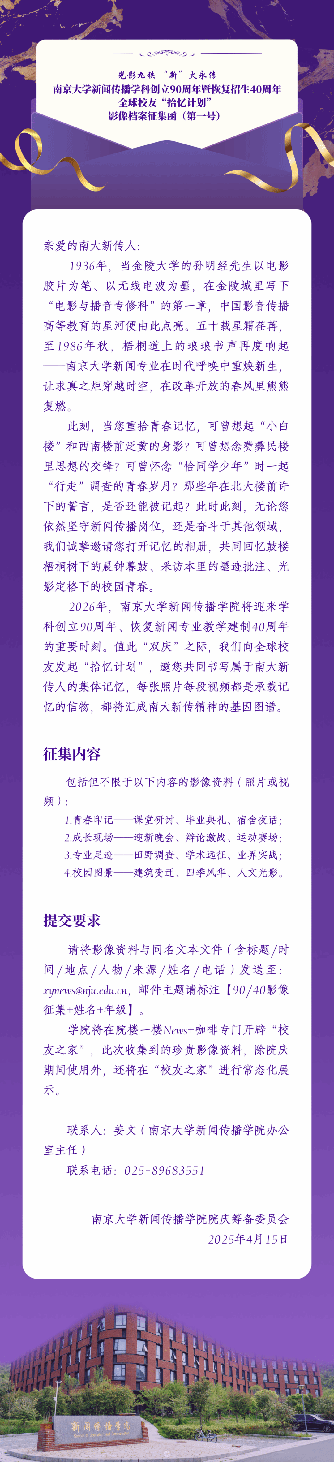 光影九秩,“新”火永传丨ai色情 新闻传播学科创立90周年暨恢复招生40周年全球校友“拾忆计划”影像档案征集函(第一号)