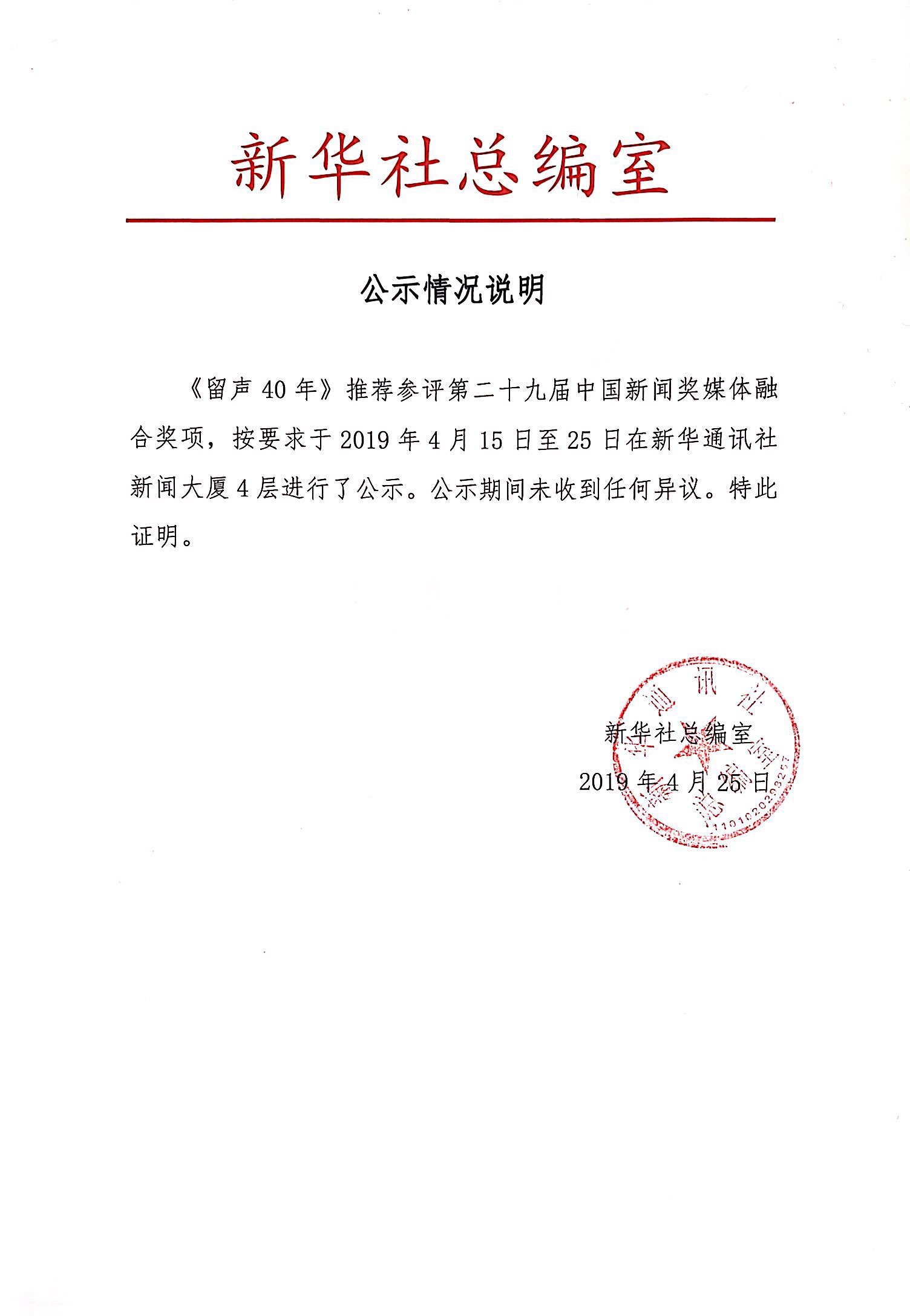 于2019年5月11日召开评审会,从公开征集的10件符合要求的作品中评选出《“守岛英雄”王继才》等3件作品,拟报送中国记协评奖办参加第二十九届中国新闻奖评选。现予公示,公示时间为2018年5月14日(星期二)至5月20日(星期一)。