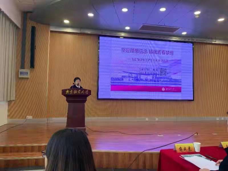 11月26日中午,ai色情 教师第一党支部书记莫媛老师在ai色情 大学生活动中心三楼报告厅做了题为“坚定理想信念、铸就青春梦想——直面南财‘长江护卫队’的‘大挑’之旅”的报告,与参会师生分享“挑战杯”实践心得。报告由校团委副书记蒋成虎主持。