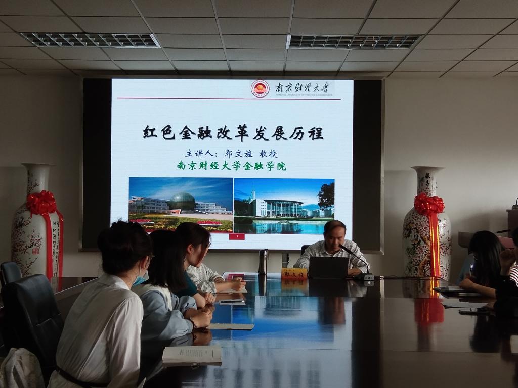 首先,郭院长简要介绍了本次主题讲座的内容,梳理了我国从金融业的萌芽阶段到金融体制的深化与完善阶段的红色金融改革发展历程,使同学们对本次党课的内容有了宏观上的了解。
