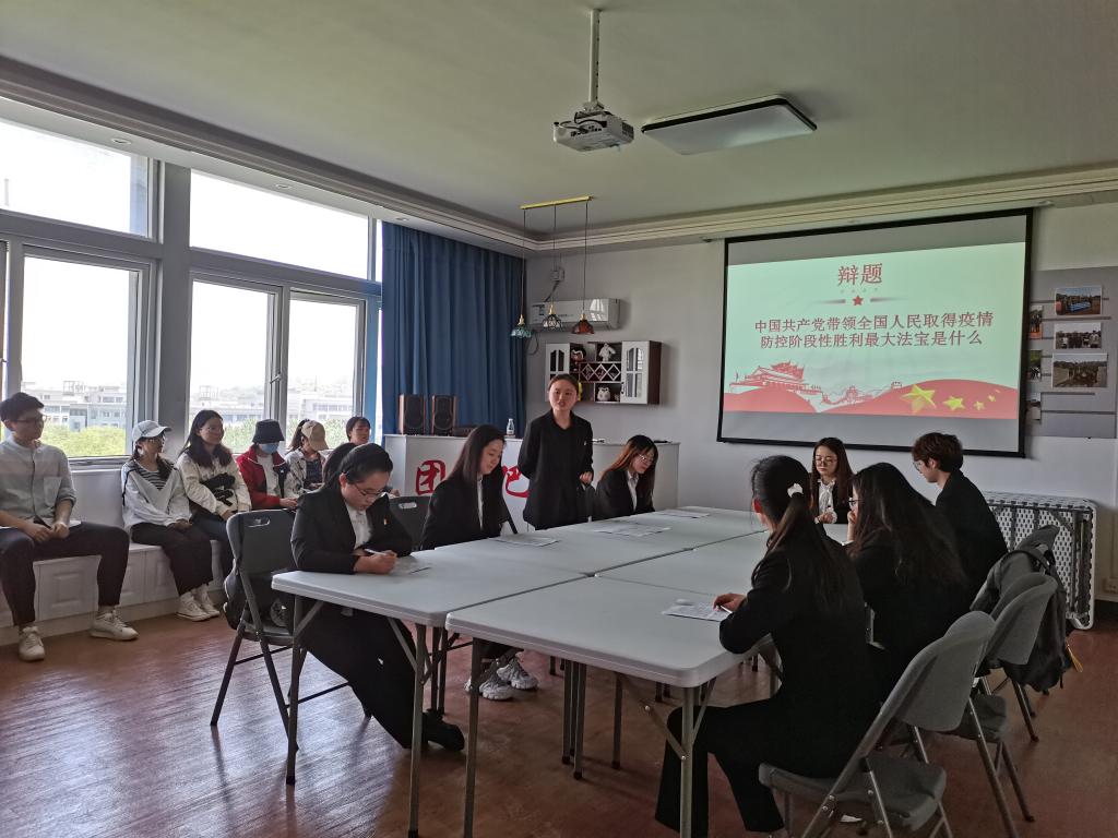 首先,主持人对到场的辩手、观众和老师表示热烈的欢迎并详细介绍了参赛规则。此次的辩题为“中国共产党带领中国人民取得疫情防控阶段性胜利的最大法宝是什么”。辩手们结合自身的经历与体会,对比国内外疫情防控的效果进行深入思考、全力相搏。台下的观众也深陷于辩手的发言之中,时而为正方的逻辑清晰热烈鼓掌,时而又点头对反方的观点给予肯定。到了陈词总结的环节,正方认为,中国共产党带领全国人民取得疫情防控阶段性胜利要靠人民实践,坚持紧紧依靠人民的工作方法,把人民作为执政的最大底气是疫情防控成功的主要因素。反方认为,疫情发生后,党中央的高度重视,准确判断,及时部署,统一指挥。各级党组织、政府、企业、社会团体服从大局,步调一致,积极行动,这才使得全国“一盘棋”地投入疫情防控。正是党的集中统一领导使得疫情防控取得大的成效。最后,主持人对本次比赛进行了专业性和理论性的总结,“百年党史,激昂青春”主题辩论赛落下了帷幕。