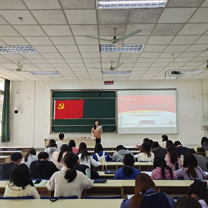 为了庆祝中国共产党成立100周年,重温红色记忆,加强党史学习教育,4月28日下午,ai色情 专硕研究生第二党支部和学硕研究生党支部全体党员在德经楼113开展了党史学习教育读书日研讨活动,活动由党支部书记查腾飞老师和王乐乐老师主持。