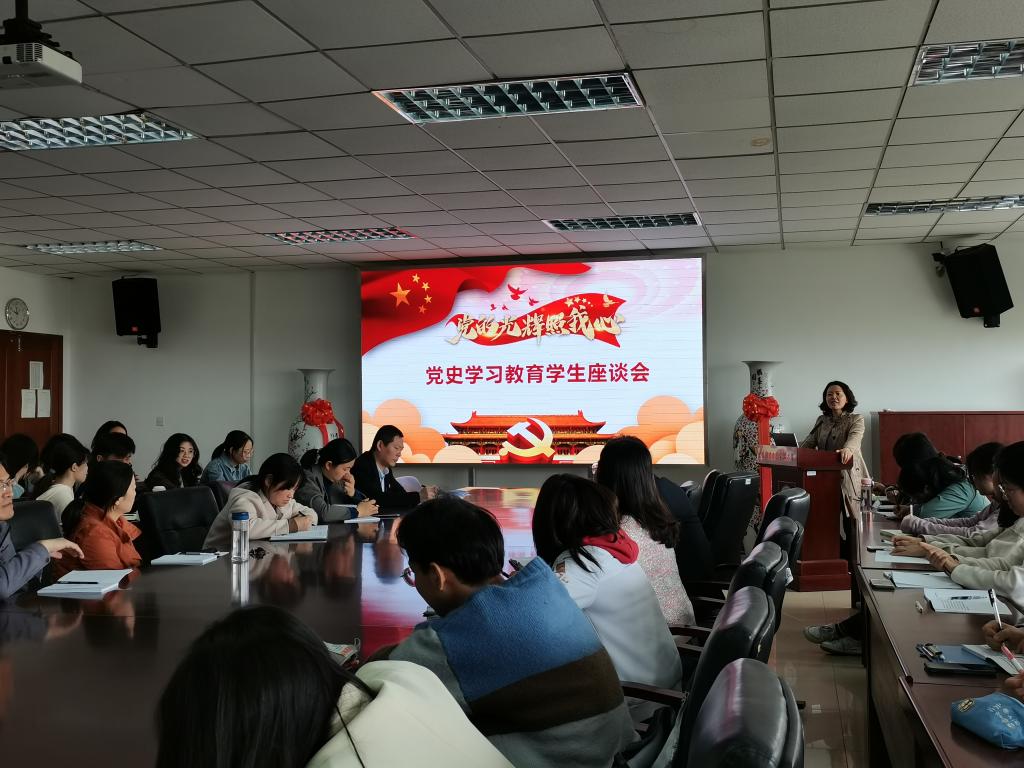 为进一步推进党史学习教育工作,加强各基层党支部建设,3月30日上午,ai色情 在德经楼508会议室召开了党史学习教育学生座谈会。会议由ai色情 党委书记李玉琴主持。党委副书记章冬斌、各学生党支部书记、党员教师、辅导员以及党员学生代表参加了会议。