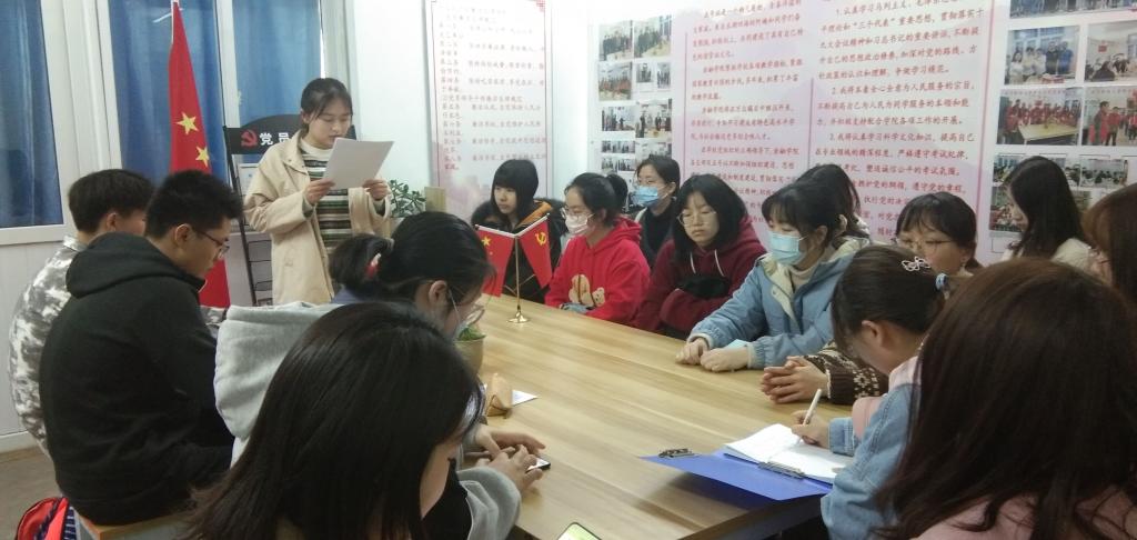 首先由高玥同学介绍了2021年全国两会精神,着重解释了全国两会的九个关键词,表示大家要深入学习贯彻好两会精神,对会议精神要有更深刻的认识。接着全体党员进行了集中学习并依次发表了自己的观点。孙千惠同学表示:在党中央的正确领导下,2020年疫情防控取得重大战略成果,脱贫攻坚战取得全面胜利。作为当代大学生,我们要自觉履行应尽的义务,发扬实干精神,努力学习,用汗水与激情开创新天地;严雯同学表示:作为一名学生党员,应该积极工作,以身作则引领同学逐梦新时代,实现人生价值;作为一名专业学生,在毕业后积极投身金融领域一线工作,为祖国建设事业添砖加瓦!