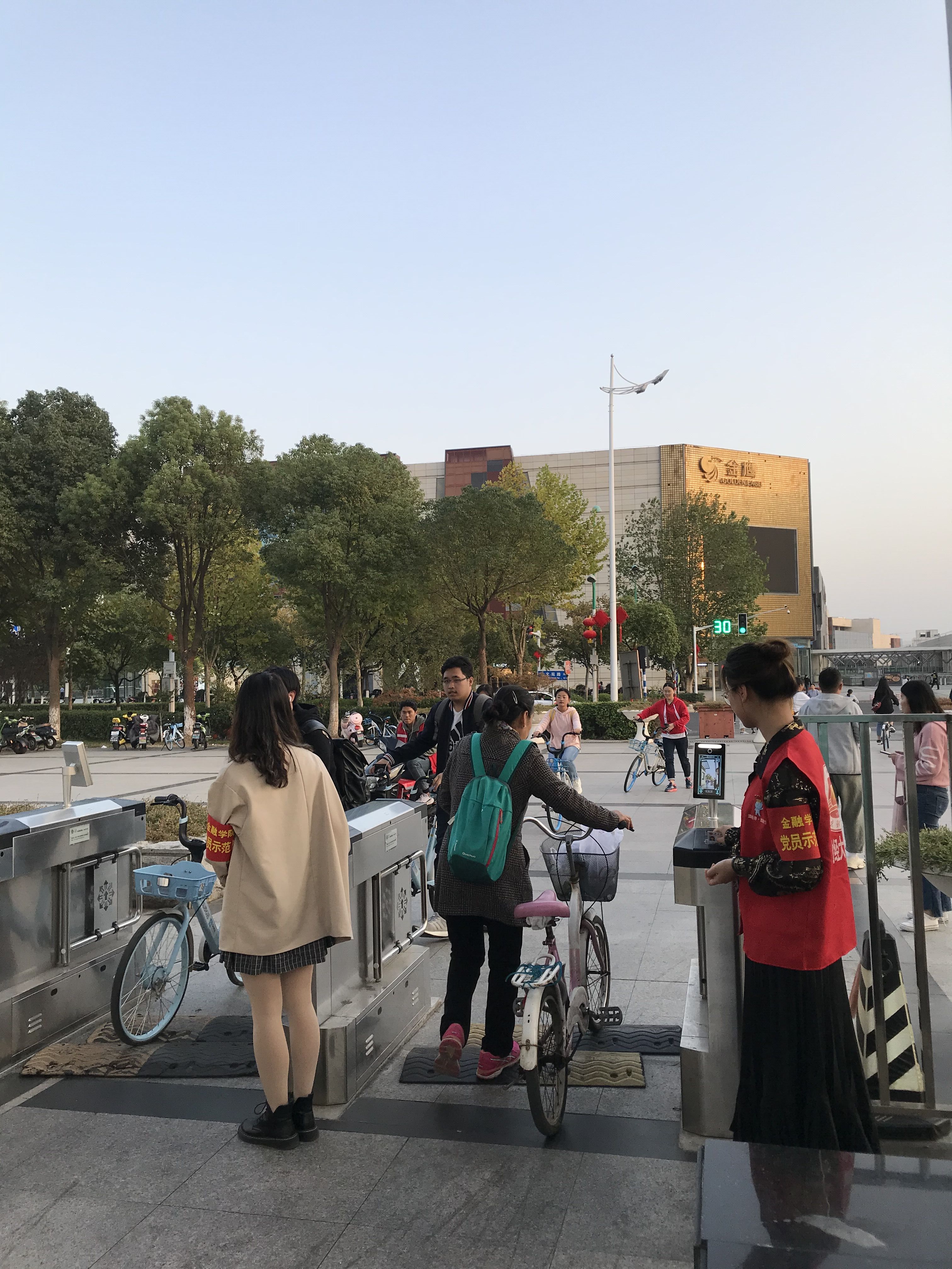 学生党员志愿者们在每天早、中、晚三个时间段到校园南门口,佩戴党章和袖章,协助保安引导骑行人下车推行有序刷校园一卡通进出校门,对存在安全隐患的行为进行劝导以维护进出校园秩序和安全。