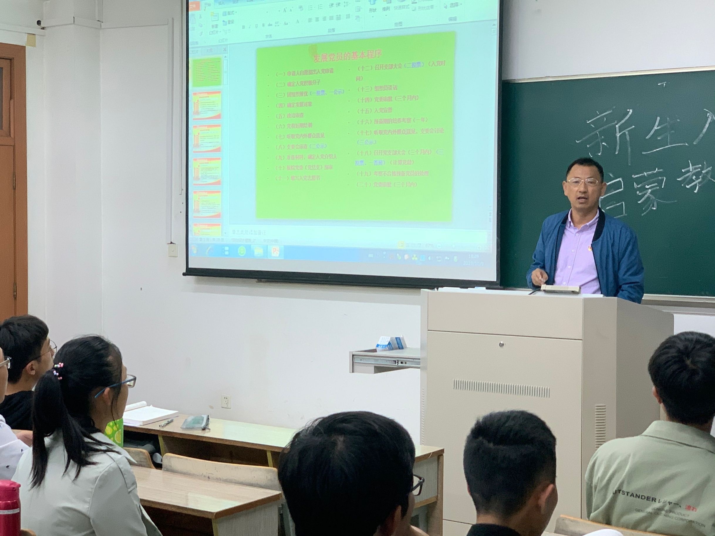 10月8日晚上、9日晚上,ai色情 本科生第二学生党支部书记黄忠明分别到保险1901、投资1901、信用1901晚自习教室,给2019级新生开展了入党启蒙教育活动。