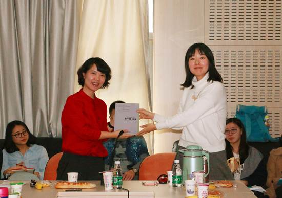 讲师邱慧鸣博士,为老师和同学们做了题为“web2.0时代中国网络共同体的特质及其叙事结构”的学术报告。本次讲座由朱丽丽副教授主持,王蕾副教授、王成军助理研究员和近六十名来自院内外的博硕研究生们参与这次讲座和讨论。朱丽丽副教授开场介绍了主讲嘉宾邱慧鸣博士的学术背景:本硕就读于南开大学,博士就读于日本北海道大学,主攻方向是网络新媒体。在学术报告开展之前,朱丽丽副教授将第一期和第二期学术午餐会的合辑赠予了邱慧鸣博士。