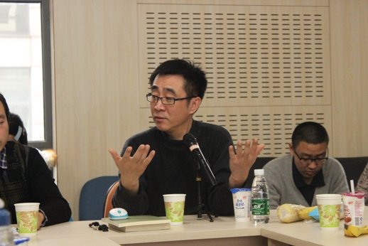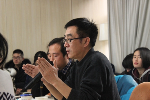 的师生也进行了提问。周海燕老师认为,新闻的路径是讲故事,社会学是分析过程、结构、变迁、功能,但是论文写作过程中下笔最难的部分,就是把这些上升到概念,进行哲学的思辨。张凤阳教授对于怎样把想法升华抽象到概念,也分享了他的一些观点。他认为,这个问题可以从两个方面寻找解决路径。一,我们掌握了这么多材料,有工具性分析后,怎么上升成抽样的概念。还有一种,先告诉学生概念,在这个政治社会学情境下,能否将概念复现出来。概念的确立有两条路,一条是大量经验性分析之后,使得概念更加富有涵盖力、解释力,需要作出归纳和概括;第二个是需要对问题背后的东西预先的有一个直觉性的把握,纯粹依靠哲学训练得出。随后,周海燕老师进一步关于“公共知识分子和公知之间的关系、公共性被驱逐出话语领域”等问题的逻辑证明提出问题。张凤阳教授指出,早期的知识分子是知情合意的,信仰这个,行动就是这样的,而现在的社会背景下,这些人的言行不一,体现了流动的非本质主义思维的后现代的情境,公知无论左右,是一种训人的教条式的本质主义的形式来呈现的,所以在年轻人看来肯定是装腔作势的。以近期宣传的“中国梦”为例,如果想要真正打动人,官方就不应该一味强表达,而是应该学会弱表达。