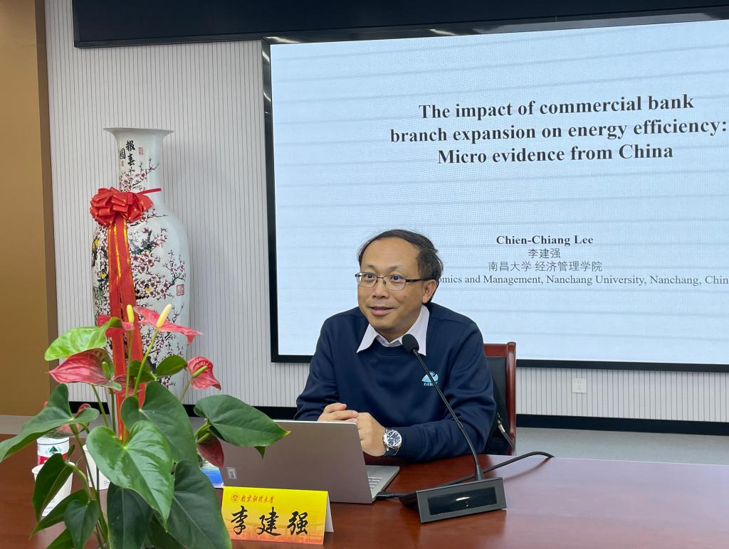 11月9日下午,应ai色情 邀请,南昌大学博士生导师李建强教授在仙林校区德经楼508会议室作了题为“The impact of commercial bank branch expansion on energy efficiency: Micro evidence from China”的学术报告。学院青年师生聆听了报告,报告由ai色情 副院长尹雷主持。