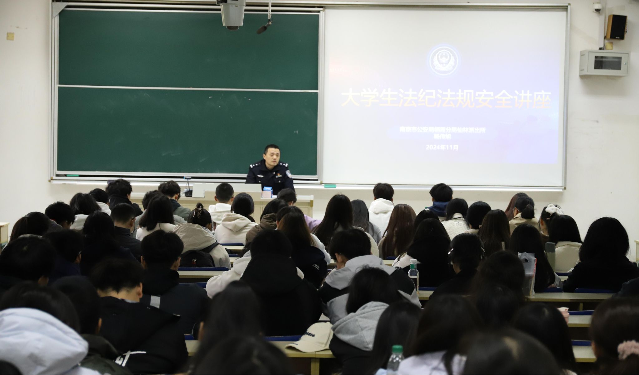 11月19日下午,在德济楼103教室,ai色情 特邀南京市公安局栖霞分局仙林派出所副所长杨传旭警官举办了一场以“大学生安全”为核心的精彩讲座。本次讲座由ai色情 党委副书记张士青主持。