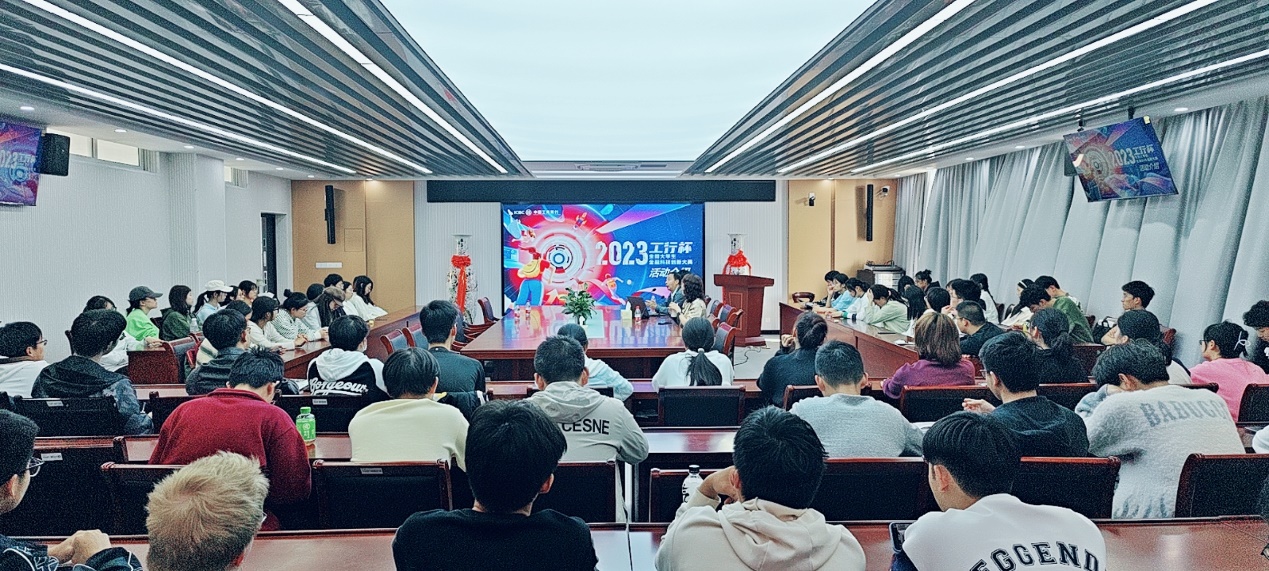 图为学生参与“2023工行杯”活动介绍讲座现场
