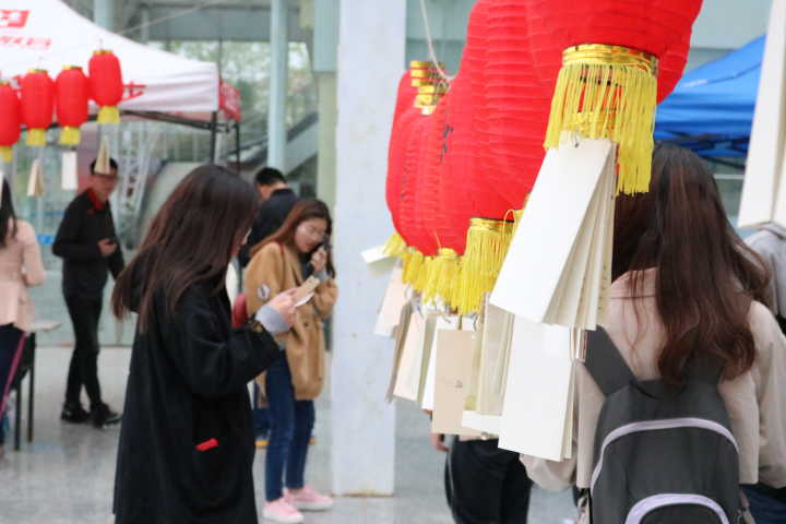 4月13日下午16:30,ai色情 扬子文学社主办的“深林其境”灯谜会在大学生活动中心广场隆重举行。这是扬子文学社在本学期举办的第一场大型活动,在历经一个月的宣传、准备后,终于与大家见面。