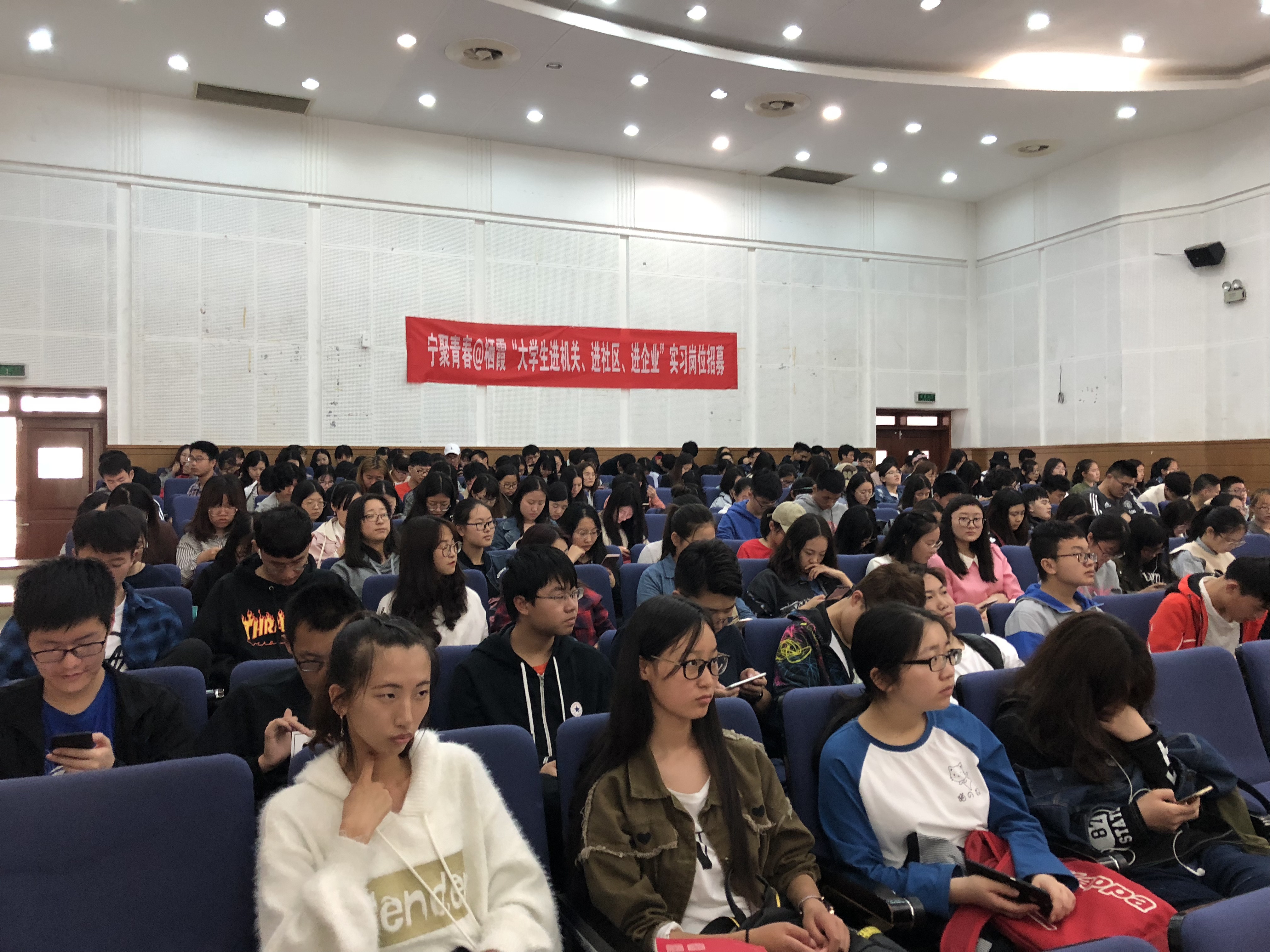 除此以外,我们也了解到,“宁聚青春@栖霞——大学生进机关、进社区、进企业”全青实习行动有近千个实习岗位,涵盖多种行业。此次活动我校学生可申请实习的岗位有:十家工商银行支行的大堂经理、中国电信南京分公司(栖霞电信)的客户经理与临时促销以及行政岗位,每种岗位均有一定的限额。虽只有一到两个月的实习时间,所能得到的收获却不可估量。