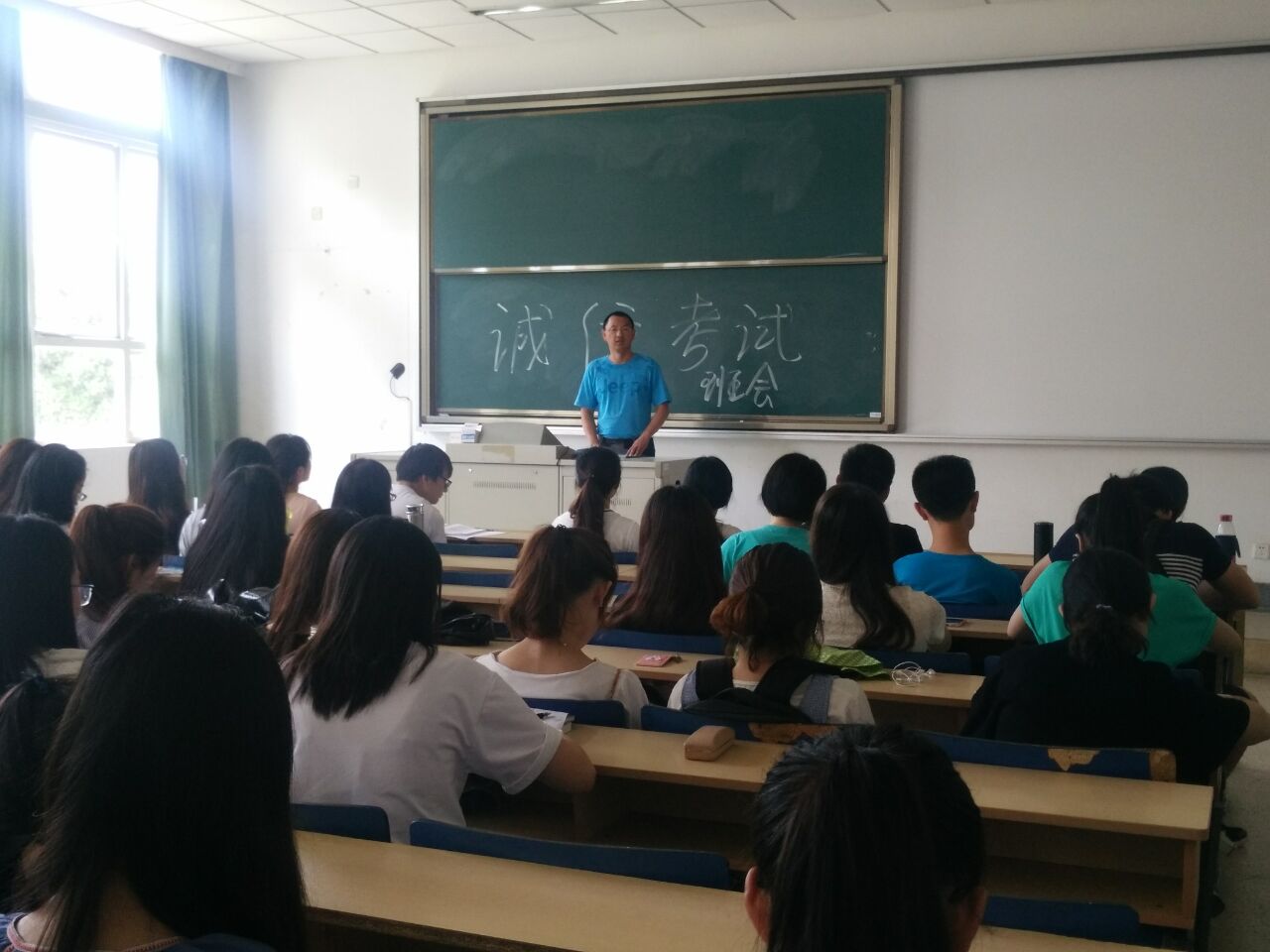 为进一步严肃考风考纪,鼓励督促大学生积极复习迎考,充分展示ai色情 大学生良好的班风学风,杜绝各种考试违纪作弊行为,辅导员黄忠明老师于6月14-15日JB-202、Z1-117教室,组织“严肃考风考纪,争做诚信考生”的主题班会。