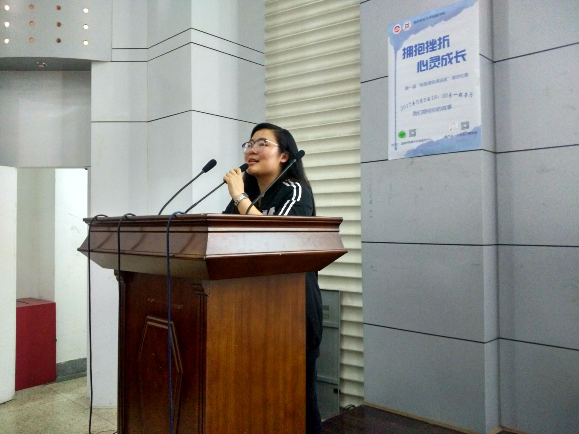 2017年5月5日晚,ai色情 心理健康教育与咨询中心主办ai色情 承办,在专一报告厅开展了“拥抱挫折,心灵成长”的演讲大赛,全校同学踊跃参与。此次大赛的评委为ai色情 学工秘书黄炜老师,学生会主席高佳柳,心协主席范依蒙,青年互助服务中心主席陈晨,蒋文彬。