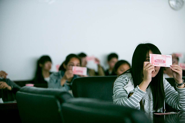 会议伊始,张士青老师致辞,感谢蔡敏科长百忙之中能来到ai色情 对学生开展诚信教育和传授银行业务知识;希望希望今后能多交流继续合作。讲座开始后蔡科长先是从新版人民币的发行给同学们说了中国目前的假币现状,并倡导大家拒绝使用假币,诚信做人,发现假币应主动联系公安机关或银行;接着,为了让同学们能够更加明确区分真假人民币,她发给每位同学一张真的新版人民币和一张假的新版人民币,并详细介绍了区分真假人民币的方法;随后,蔡科长又和我们分享了银行的一些工作情况并欢迎我们财大学子能够进入人民银行工作,同时告诫大家诚信是每个员工必须具备的基本品质。