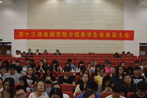 6月12日晚6:30,ai色情 第十三届分团委学生会换届大会在经济学科楼双登报告厅顺利举行。分团委书记张士青老师、分团委副书记谢海鸥、ai色情 学生会主席杨灵、执行主席段峰、副主席孙赫一、熊伟杰以及各院秘书长、学生会各部门代表、ai色情 各社团代表、班级代表参加了本次会议。