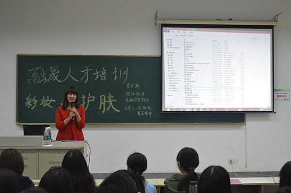3月20号下午6:30,ai色情 学生会学术部联合ai色情 职妆学会举办了开学第一场融晟人才培训---彩妆与护肤。本次培训邀请了玫琳凯美容护肤顾问周玉老师为大家讲解彩妆护肤方面的技巧,为大家开启美丽之门。