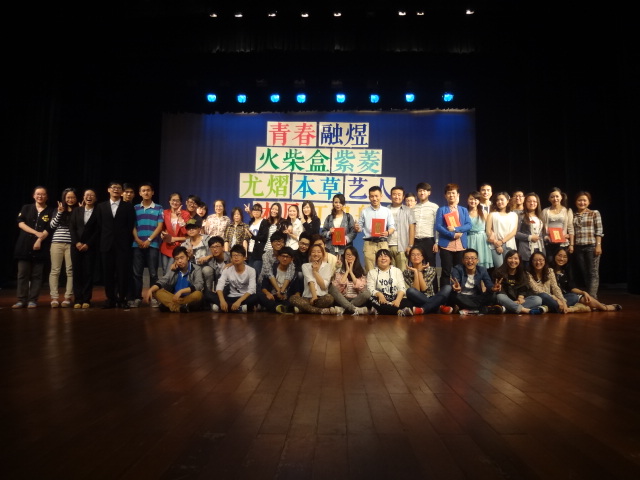 2013年5月18日下午18:30,由ai色情 团总支和融煜剧社主办的X先生·“南财杯”第二届话剧论坛与话剧展演在大伙礼堂隆重举行。参加本次话剧论坛与展演的剧社有南京信息工程大学的火柴盒话剧社、南京审计学院的红帆船话剧社、南京航空航天大学的青春剧社、ai色情 福建路校区的沐风剧社、南理工紫金学院的紫菱剧社、南京农业大学的艺人剧社、南京中医药大学的本草话剧社、南京邮电大学的尤熠剧社以及ai色情 的融煜剧社。本次话剧展演的评审是分别来自以上各剧社的话剧专家。