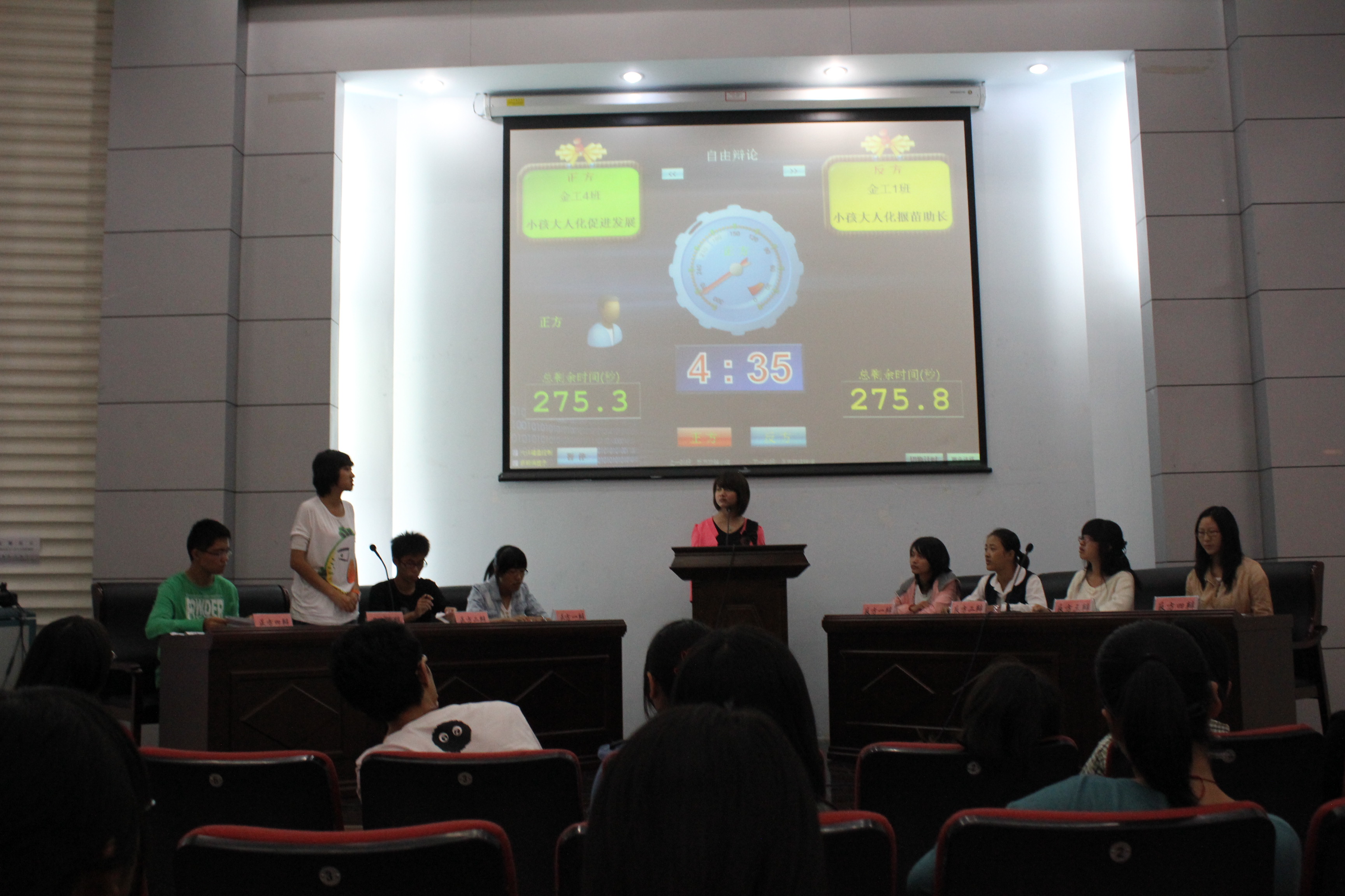 10月10日晚,由ai色情 学生联合会和ai色情 辩论队共同主办的2012年南财ai色情 第九届新生辩论赛复赛顺利进行。晚上,专一报告厅座无虚席,初赛胜出的金工1班和4班以及保险1班和2班在这里进行了精彩的角逐。金融辩队的主席及各优秀辩手和学生代表组成了此次的评审团。