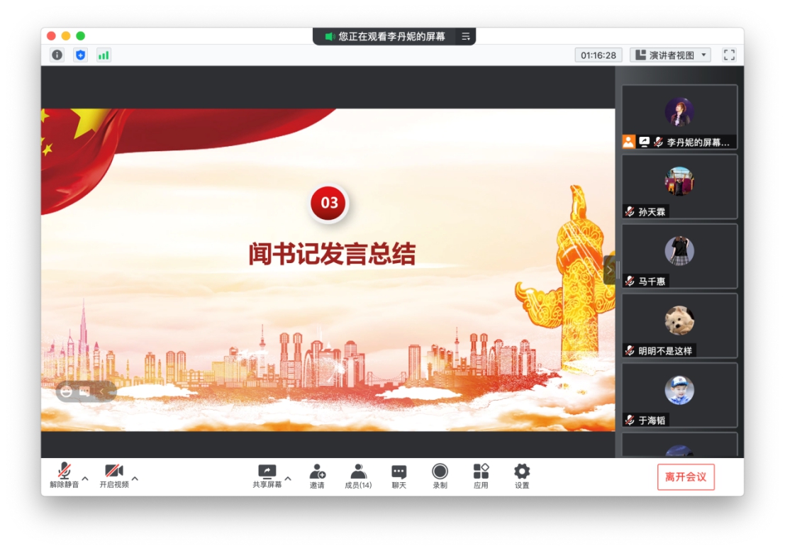 观展结束后,临时党小组于9月8日晚召开线上交流会议,学习习近平总书记“七一”重要讲话精神的学习,并就本次参展的心得与收获进行交流。