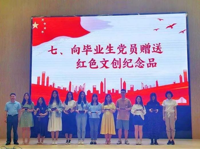 学院党委向毕业生党员赠送毕业礼物——一支印有学院logo和建党百年文字、带有优盘功能的笔,意在嘱托毕业党员不忘母校的栽培和学院的教诲,在未来执好奉献之笔,一笔一划书写好自己的精彩人生。