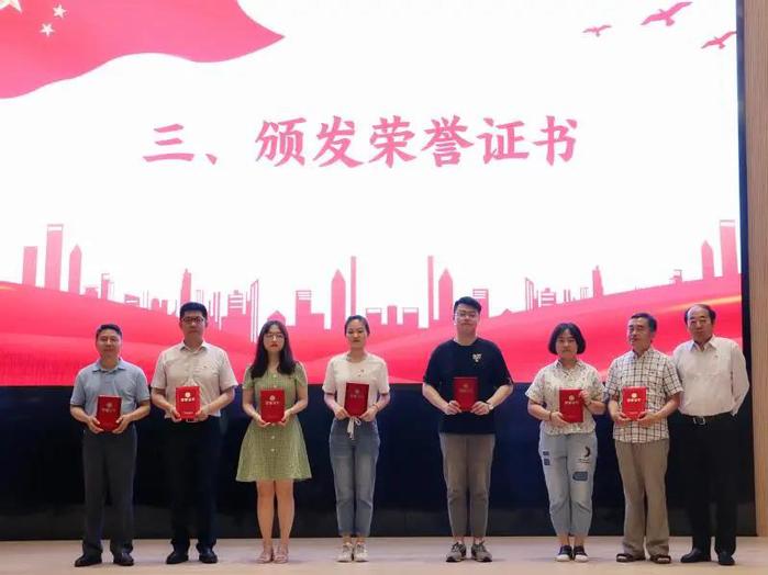 本次大会共表彰了优秀共产党员称号获得者16人,优秀基层党务工作者称号获得者9人;获评先进党支部的支部2支,获评最佳党日活动4项。院党委书记刘源、执行院长张红军、荣休教师段京肃分别为他们颁发荣誉证书并合影留念。