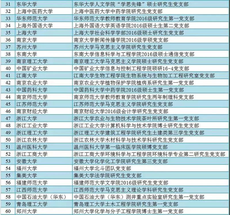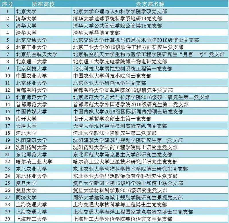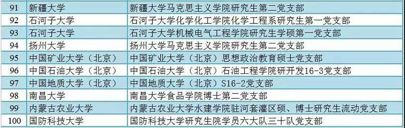 全国高校“百个研究生样板党支部”公示名单(排名不分先后)