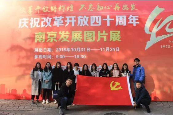 2017级学硕党支部与新华日报第十二党支部共同举行了“回顾光辉历程 重温改革记忆——庆祝改革开放四十周年”组织生活会。在本次组织生活会召开的前一天,新传17级学硕党支部的同志们实地参观了在南京市规划建设展览馆展出的“庆祝改革开放四十周年南京发展图片展”。