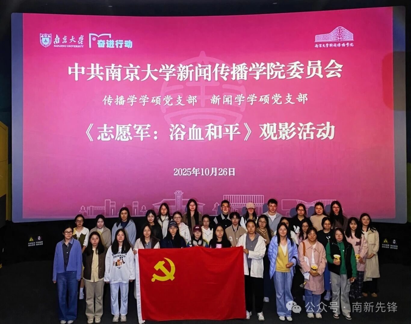 传播学学硕党支部和新闻学学硕党支部组织全体党员观看电影《志愿军:浴血和平》。时值中国人民志愿军抗美援朝出国作战75周年,本次活动以影像为媒介,带领党员重温抗美援朝战争的烽火岁月,深切缅怀志愿军先烈的丰功伟绩,从历史中汲取奋进力量。同时,借此契机勉励新传学子担当起新时代叙事者和守望者的责任,为传承和传播中华民族的历史记忆贡献青春力量。