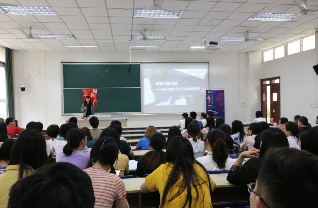 5月31日下午,成长不期而遇——《实习求职方法论与自我探索》就业指导讲座在德经楼114教室举行,中信证券江苏分公司人力资源总监王裕娟担任本次宣讲人,ai色情 党委副书记章冬斌及部分2016级学生参加了本次招聘会。