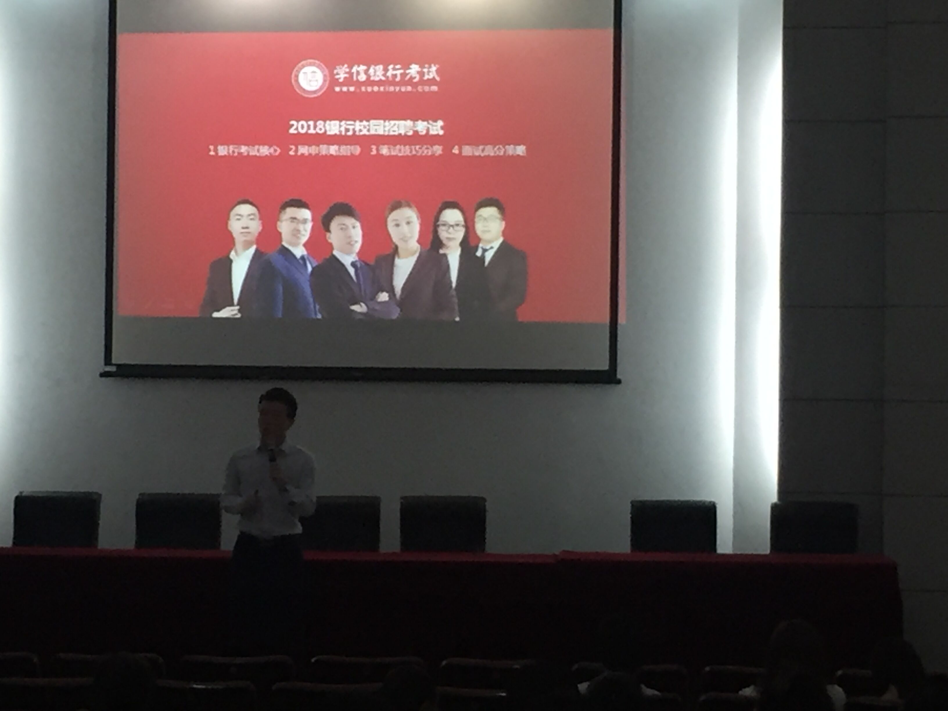目前,各大银行招聘信息陆续发布,已启动了银行招考的序幕;在此关键时间窗口,举办相关职业发展讲座,对于学生明确职场定位,理清职业发展思路、提升求职能力都有重要的指导意义。通过本场讲座,学生们对银行招聘考试有了更加深入的认识,在备考中也将有的放矢地进行准备。