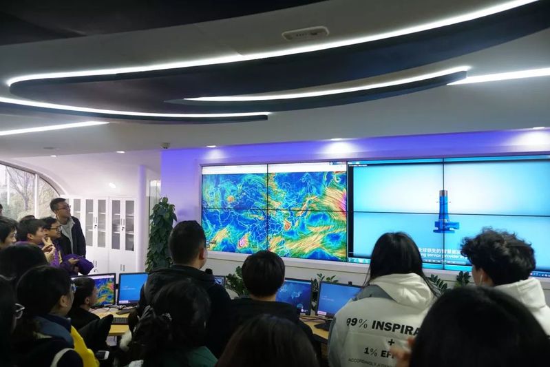 随后,工作人员用大屏幕展示了远景科技对于世界各地风速的计算和预测。当看到南京市栖霞区的风力情况展示在屏幕上时,同学们纷纷感叹科技的神奇。最后,师生们还参观了远景集团的生产车间。