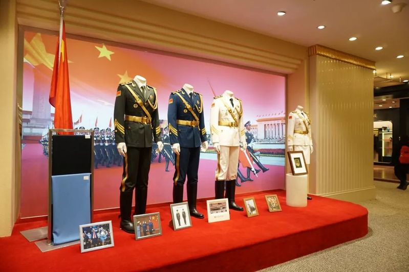 阳光集团制造的军装观看完宣传片,同学们参观了综合展厅,欣赏了工艺精细的羊毛制品,除了面料外,阳光集团还生产大衣、围巾、西装、军装等服装,以及沙发、椅套等家纺织品。