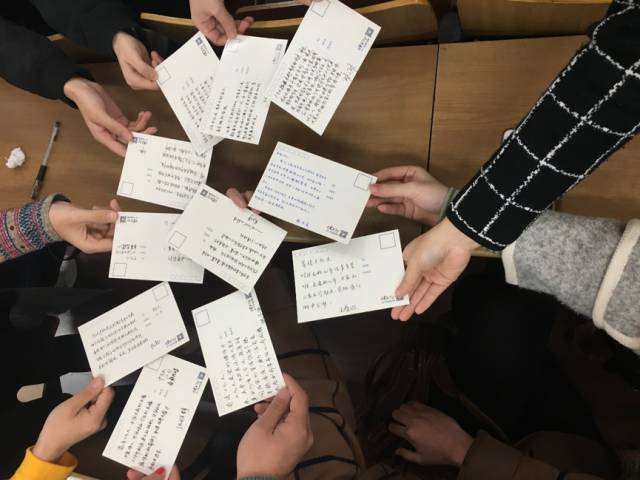 在外交流的同学们亦结合自己的交流体悟,通过书写在线明信片的方式进行了交流。“习近平总书记在报告中对九二共识的重申,让此时此刻身在台湾的我感受备深。”正在台湾政治大学交流学习的徐宣宣写道,“自《马关条约》签订后,台湾同胞一直没有放弃过斗争,想要回到祖国的怀抱。但一些台独运动成为了两岸和平发展的一大障碍。希望两岸加强文化往来与经济互惠,增进两岸认同,企盼早日实现祖国统一。”