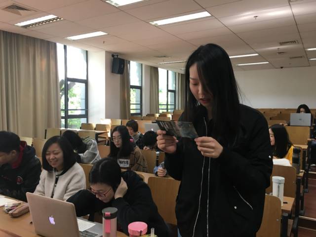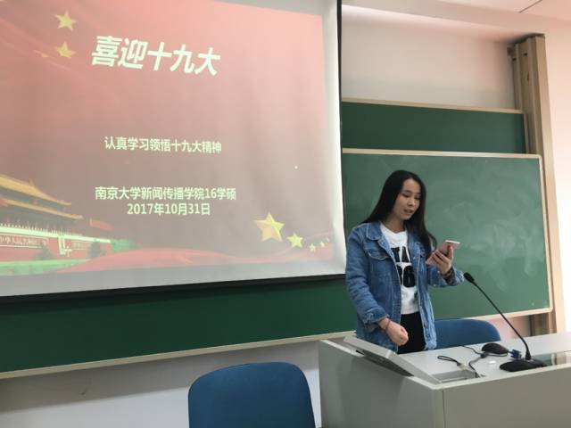 在明信片分享活动进入高潮之际,张雅静、王雪莹和贡宏云更走上讲台,分享自己对十九大的一点学习心得。