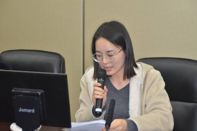 16学硕党支部的杨勤随后朗诵了书中描写江姐送药的选段。她表示书中的故事虽然已经过去了很久,但是书中人所经历的复杂心情依然能够令今人动容。“当我读起这一段描写,没有联想到很多高大上的词语,我想到的第一个词是‘敬业’。”当问起江姐的精神对于今天的我们有何种现实意义,杨勤回答道,“尤其是记者们,工作中涉及到的很多突发事件都可能跟大众的利益息息相关。这个时候,能够为大家呈现最准确的报道,而不是维护一己之私,我觉得就是江姐精神对今天的我们的启示,这也是记者这一职业所有的理想和初心。”