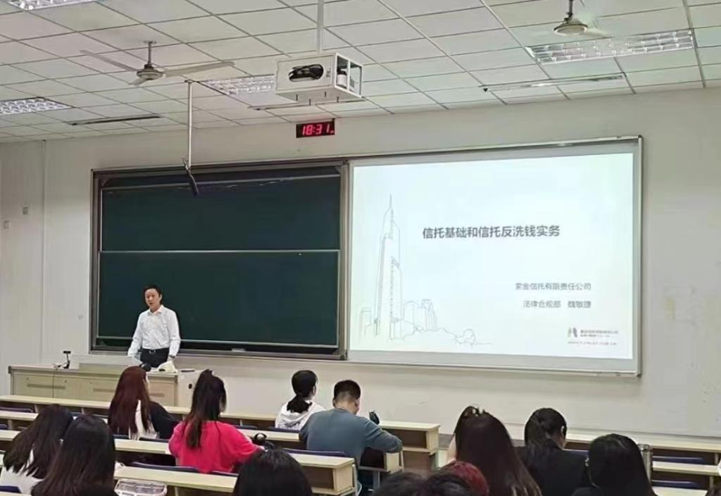 4月17日,ai色情 邀请了紫金信托有限责任公司的魏敏捷专家进行现场授课,为同学们讲授信托反洗钱的相关知识,以增强大学生对“信托业务及反洗钱”的认知。